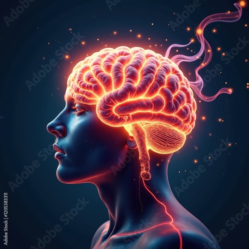 Imagery of a glowing mind with swirling thoughts and ideas floating around it, brainstorming, problem solving, creativity