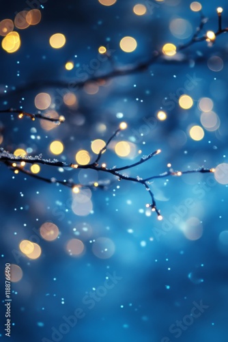 Imagine a mesmerizing winter backdrop that features sparkling blue hues, delicate snowflakes, and glowing orbs of light, all enhancing the enchanting atmosphere and creating a perfect winter scene