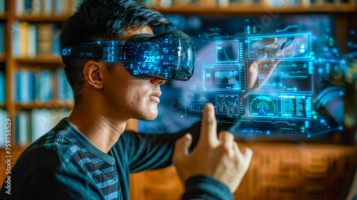 Immersed in Digital Innovation, Man Experiencing Virtual Reality, Futuristic Technology Concept