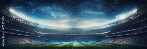 Immersive football stadium with stellar sky dome - An expansive football stadium under a night sky, with a surreal touch of a cosmos-themed dome