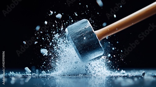 Impact of Hammer on Ceramic Plate Creating Shattering Pieces and Sparkling Shards in Dramatic Close-Up View