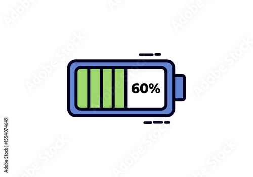 imple vector icon showing a battery at 60% charge, perfect for tech, power, and device-related content.