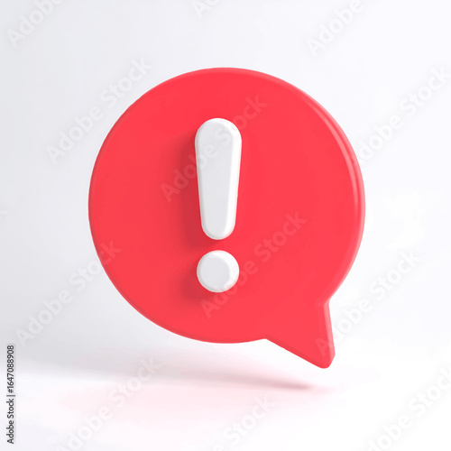 Important Notification Alert Symbol in 3D Rendered Speech Bubble Icon for Digital Communication and Warnings