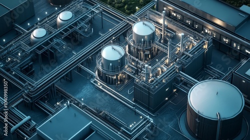 Imposing industrial architecture, a labyrinth of pipes and infrastructure at modern facility