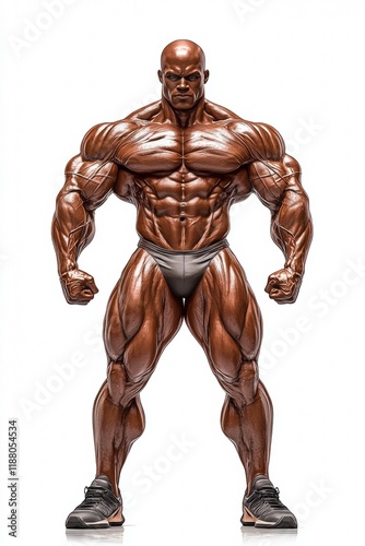 Imposing Physique: A Powerful Bodybuilder Posing Against a White Background