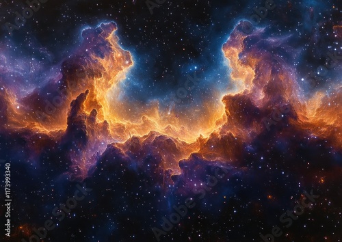 Impressionistic Cosmic Nebula in Deep Space Swirling Clouds Ethereal Starlight