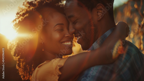 In a heartwarming close-up, a couple embraces, their faces beaming with smiles as they share a tender hug