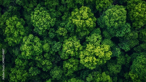 In spring or summer, a young, green forest can be seen from the top
