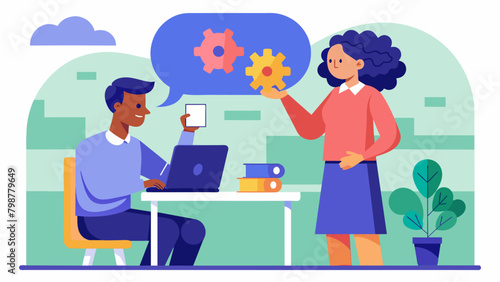 In the break room a neurodivergent employee teaches their neurotypical colleague a new way to solve a problem highlighting the importance of different. Vector illustration