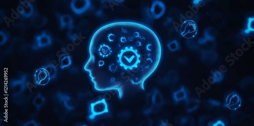 In this 3D rendering, a hologram of Creative chat GPT with speech bubbles appears on a blurry blue background, illustrating an AI concept