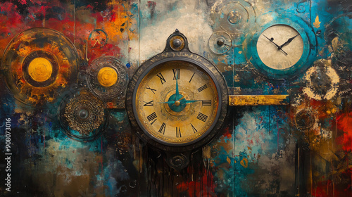 Include artistic or abstract representations of clocks, using creative compositions, vibrant colors, and imaginative designs to convey the concept of time in a unique way.
