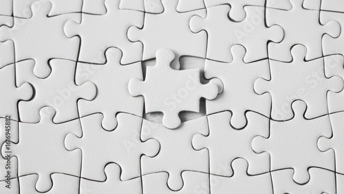 Incomplete white puzzle with one missing piece creating a sense of challenge