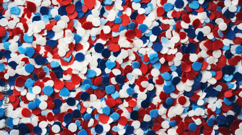 Independence Day confetti in white, red, blue background, Generative AI