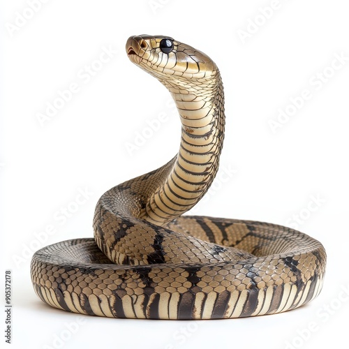 Indian Cobra Displaying Threatening Posture on White Background