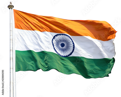 Indian national flag waving proudly against clear background symbolizes unity and pride
