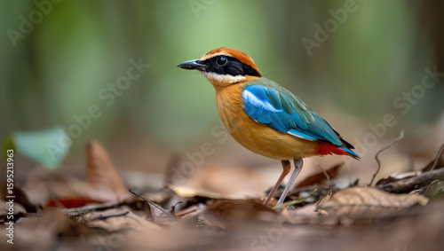 Indian Pitta Foraging on Forest Floor A Vibrant Display of Avian Beauty in Asian Tropical Ecosystem with Colorful Plumage and Distinctive Markings