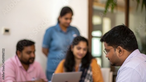 Indian team leaders coordinating hybrid meeting with in-person and remote staff