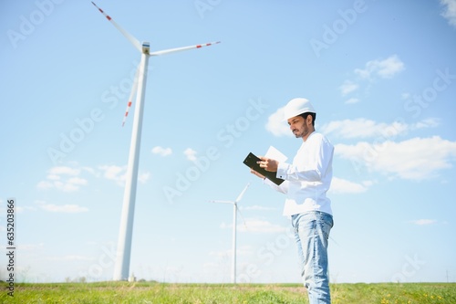 Indian Windmill engineer inspection and progress check wind turbine.