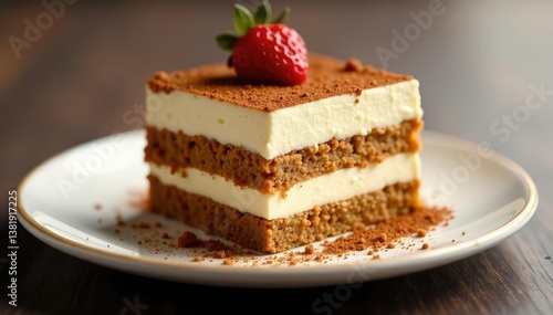 Individual tiramisu portion, showcasing rich texture and delicate layering , isolated, high quality, image