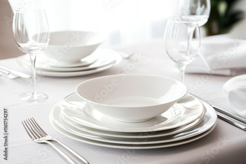 Indoor table setting with plates and cutlery, featuring modern minimalist decor