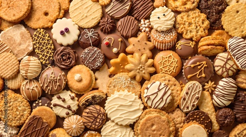 Indulge in a delightful assortment of gourmet cookies, from chocolate-dipped to festive shapes.