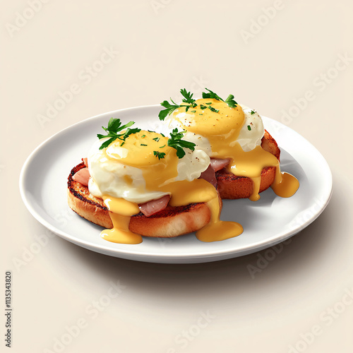 Indulge in the rich, creamy perfection of Eggs Benedict! Poached eggs, savory ham, toasted English muffins, and a decadent hollandaise sauce create a breakfast masterpiece