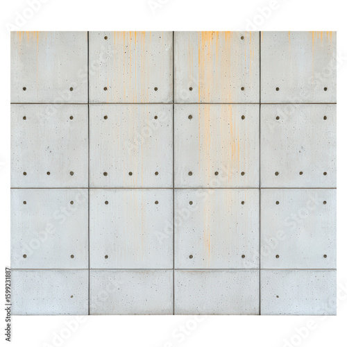 Industrial Concrete Wall with Rusty Accents and Texture isolated on transparent background.