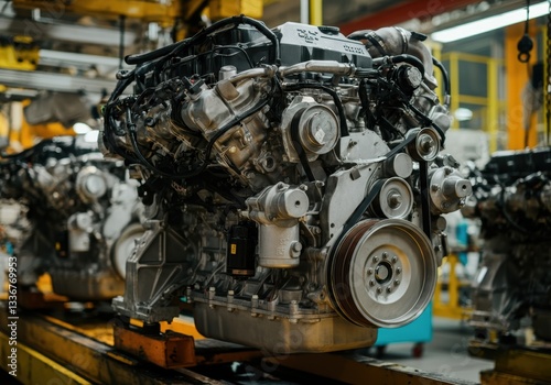 Industrial engine assembly line showcasing advanced manufacturing technology