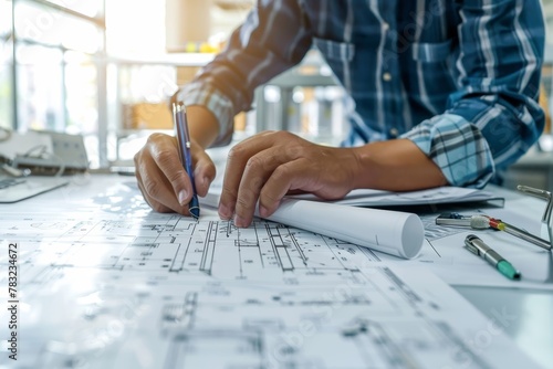 Industrial engineers working on infrastructure construction in manufacturing facility