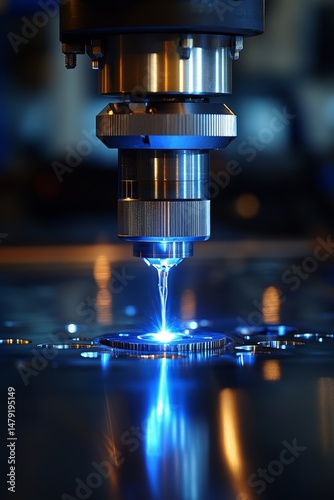 Industrial Laser Cutting Metal. Precision Engineering with Blue Laser CNC Machine in Operation.