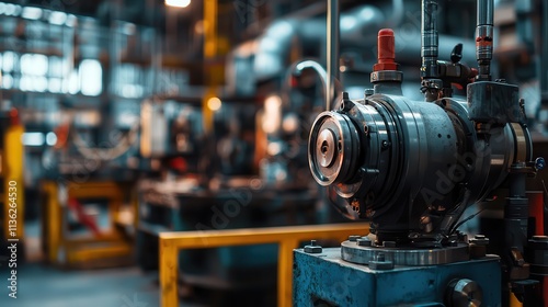Industrial machinery in a workshop with complex mechanical details