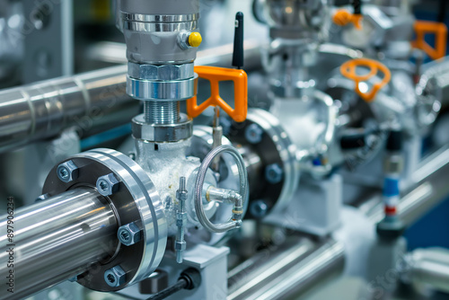 Industrial Pipeline System with Valves and Manual Controls in Modern Factory