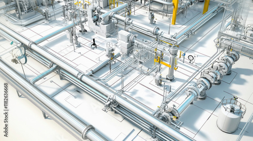 Industrial pipelines transferring liquids and gases in a modern refinery