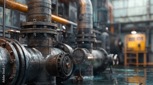 Industrial Pipes and Gauges in a Factory Setting