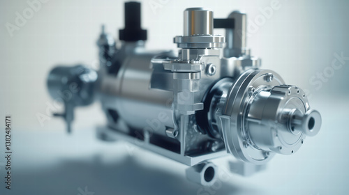 Industrial Precision: A detailed view of a gleaming, chrome-plated industrial machine, meticulously engineered and crafted to perfection, showcasing technological innovation.