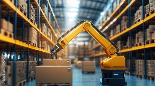 Industrial Robot in Warehouse for Product Handling