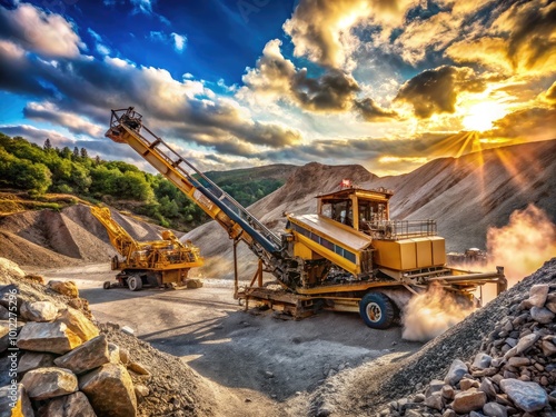 Industrial Stone Crusher Machinery in Operation at a Quarry for Aggregate Production and Mining