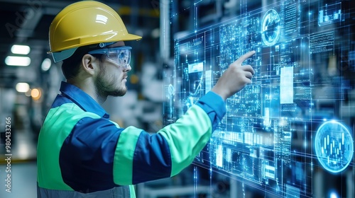Industrial Worker Interacting with a Holographic Interface