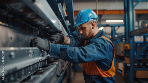 Industrial Worker Operating Machinery in Factory. Worker's day, Labour Day.