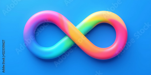 Infinite Loop Symbol, Vibrant Colors on Blue Background, Concept of Eternity