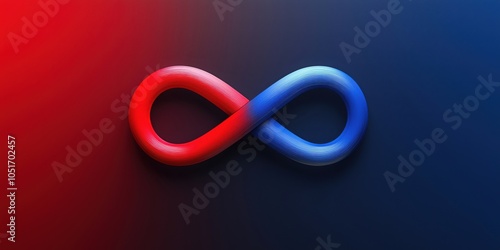 Infinity symbol in red and blue colors, smooth texture, gradient background