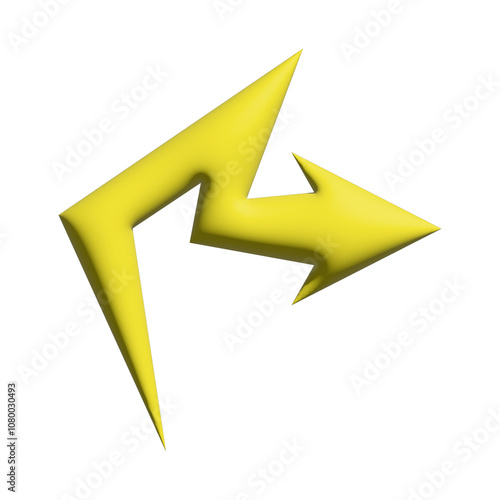 Inflate 3D illustration of arrow or direction icon with yellow color