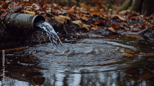 Inflow pipe adding water to a pond with visible disturbance patterns