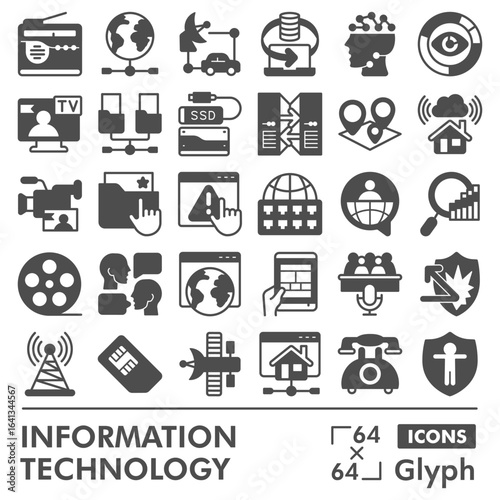 Info tech symbols collection or sketches, technology data theme with glyph style signs for web and app. Vector graphics isolated on white background.