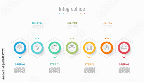 Infographic 7 options design elements for your business data. Vector Illustration.