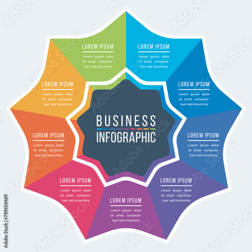 Infographic design 9 Steps, objects, elements or options information business colorful infographic template