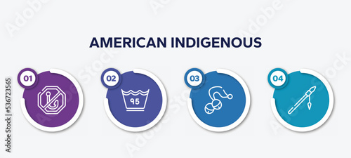 infographic element template with american indigenous outline icons such as no fishing, 95 degrees, sleigh bell, native american spear vector.