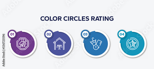 infographic element template with color circles rating outline icons such as no shower, eatery, lost items, half star vector.