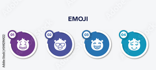 infographic element template with emoji filled icons such as stress emoji, cool emoji, laughing proud vector.