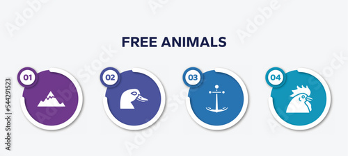 infographic element template with free animals filled icons such as angular mountain, duck head, boat anchor, chiken head vector.
